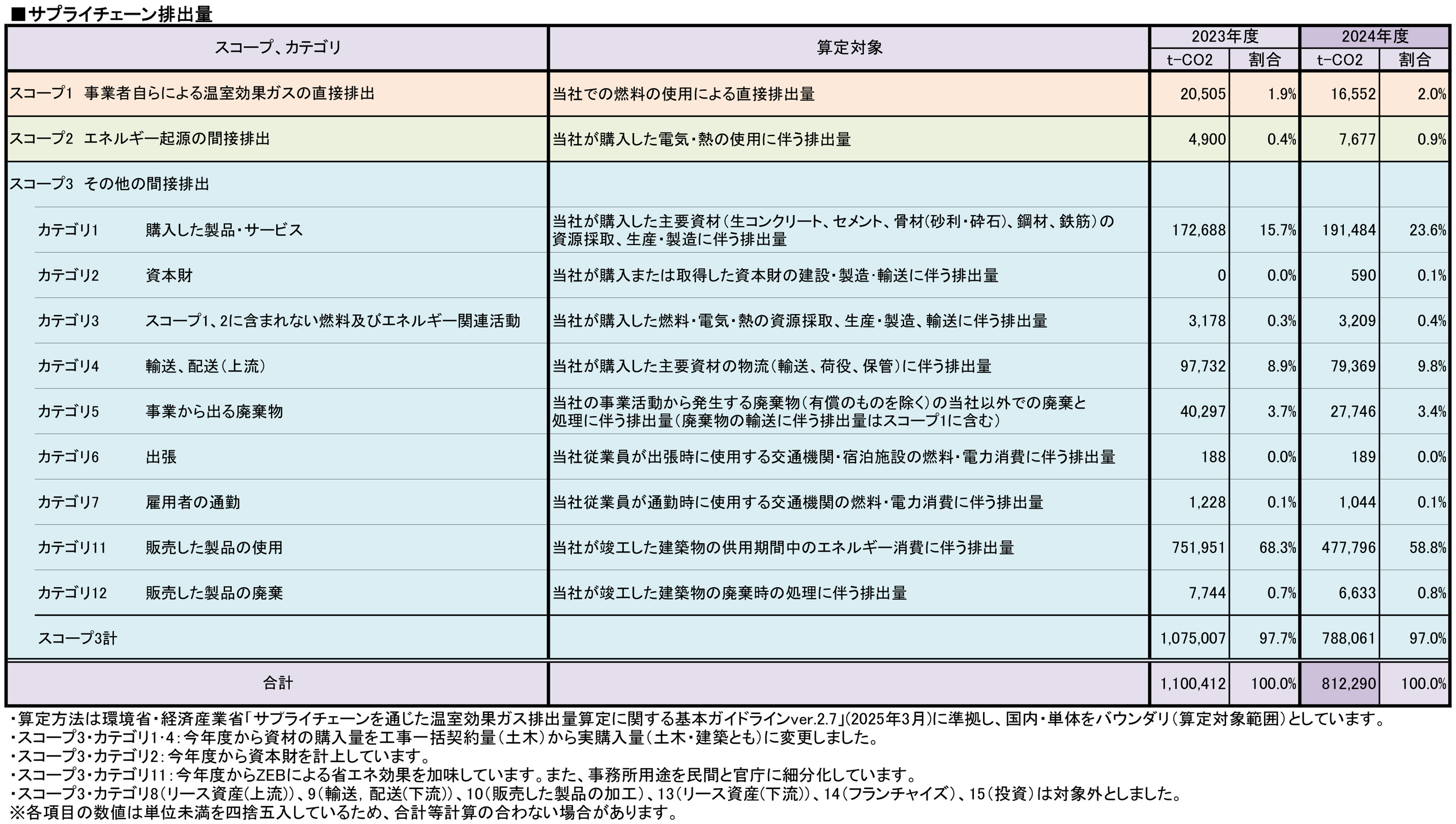 一方、カテゴリ1は、排出原単位の大きい資材(鋼材)の購入量が増えたことにより1.9万トン増加しました。